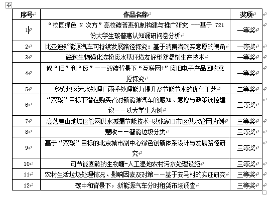 全国大学生节能减排社会实践与科技竞赛获奖作品名单: