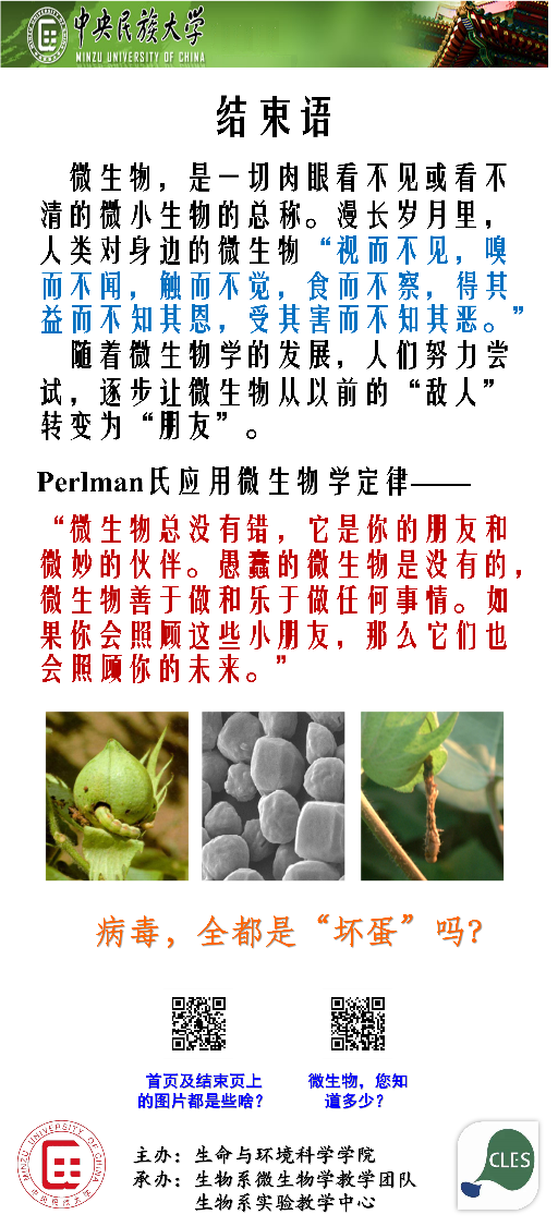 生物系《微生物学》教学团队李崴老师主持策划,由2019级生物科学类本科生制作完成,是一项结合课本学习、课外拓展与科普宣传为一体的PBL式学习项目,也是生物系微生物学教学团队进行教学改革系列举措的其中一项,系列展板正在理工楼和文华楼西大厅相继展出(展出时间为6月9日-6月18日)。