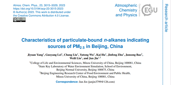 金军教授团队在PM2.5来源的指示方面取得重要研究进展,提出长链正构烷烃可作为有机示踪剂反映城市地区PM2.5来源。相关研究进展以“Characteristics of particulate-bound n-alkanes indicating sources of PM2.5 in Beijing, China”为题发表在国际著名期刊“Atmospheric Chemistry and Physics”(地球科学,SCI一区Top)上。文章链接://doi.org/10.5194/acp-23-3015-2023.