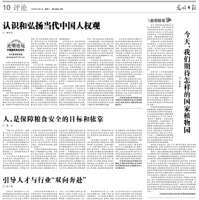 龙春林教授与中国科学院地理科学与资源研究所何思源博士署名的文章“为保护生物多样性贡献中国智慧”。