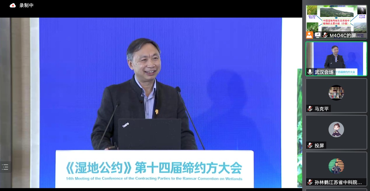 以“珍爱湿地,人与自然和谐共生”为主题的《湿地公约》第十四届缔约方大会(COP-14)于2022年11月5 ~13日在中国武汉以线上线下相结合的方式顺利召开。由中国野生植物保护协会、中国湿地保护协会、中国科学院武汉植物园共同主办的“湿地植物多样性保护与永续发展”分论坛活动顺利举办。