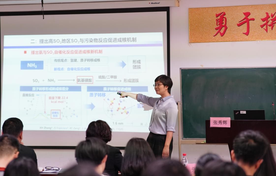 在理工楼1027举办了第一期“生环之声”学术大讲堂,由北京理工大学化学与化工学院博士生导师、国家杰出青年科学基金获得者张秀辉教授主讲,院长张严教授主持,学院师生80余人参加,主题为“大气复合污染下的颗粒物形成机制”。“生环之声”学术大讲堂邀请学术名家,营造科研氛围,旨在促进学术交流,进而提升学院人才培养、科研水平、学院建设质量,发出生环声音,讲好生环故事。