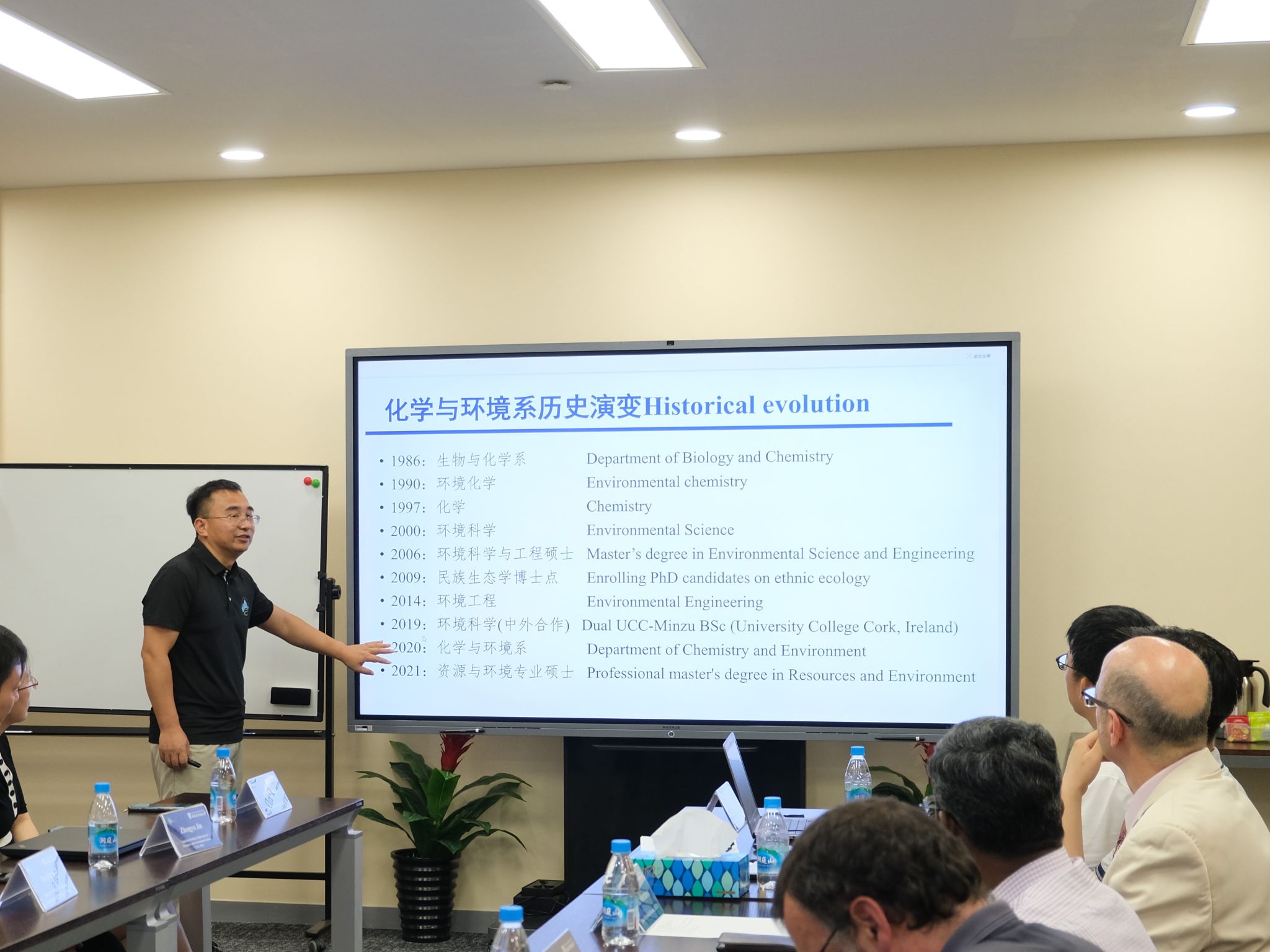 介绍了学院的发展历程、专业和学科设置、科研工作的主要方向和代表性成果等进行了全面介绍。林伟立教授、石莎教授、程勇教授及金正宇副教授分别介绍了化学与环境系、生物系、转化神经科学中心、环境工程方向的师资队伍、主要研究方向和成果特色,展现了中央民族大学在相关领域的学术实力和特色。