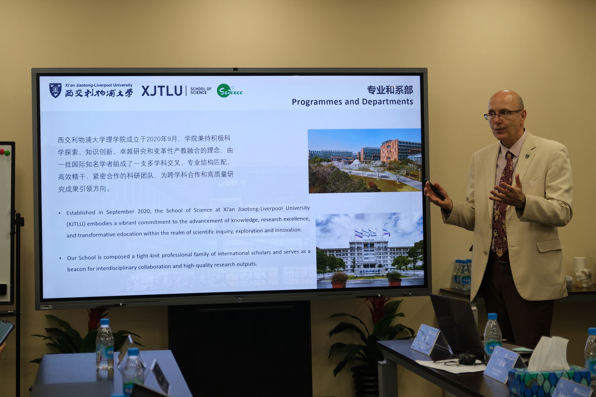 随后,西交利物浦大学理学院院长John Moraros教授介绍了西交利物浦大学理学院建设历史、师资队伍、学科概况,并分享了各个科研领域的突出成果。西交利物浦大学理学院学习与教学副院长Sekar Raju博士介绍了学院的教学模式、课程安排以及学位授予等教学体系,并详细介绍了学院的教学项目和特色。