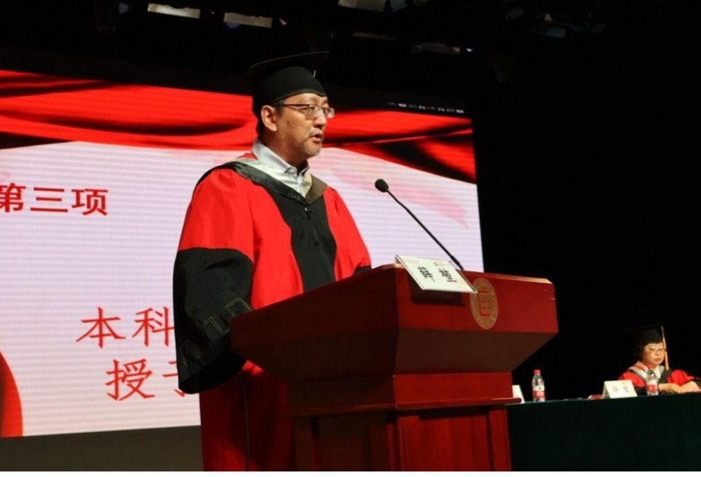 最后,院长张严教授发表了热情洋溢的致辞。她首先向全体毕业生表示热烈祝贺,并向优秀毕业生、优秀学位论文获得者以及选择到西部基层就业的毕业生表示敬意。她鼓励毕业生们在新时代的征程中用实际行动践行生环精神,履行生环职责,厉行青年担当,当面对挫折和困难时保持坚强的意志和耐心,避免浮躁,脚踏实地,在新时代新天地建功立业。