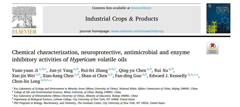 龙春林教授团队在金丝桃属民族药物学研究中取得新进展,相关研究成果以“Chemical characterization, neuroprotective, antimicrobial and enzyme inhibitory activities ofHypericumvolatile oils”为题在Industrial Crops and Products(影响因子5.645,农林科学类1区Top)上发表,论文连接://doi.org/10.1016/j.indcrop.2021.113991。