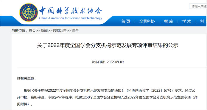 “中国科协2022年度全国学会分支机构示范发展专项”是中国科协科学技术创新部于2022年6月组织实施的发展专项,旨在培育一批组织规范、运行有序、引领显著、实力强劲的全国学会分支机构,发挥示范引领作用,推动全国学会分支机构规范运行和高质量发展。