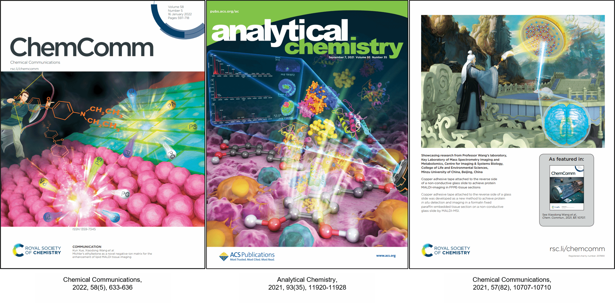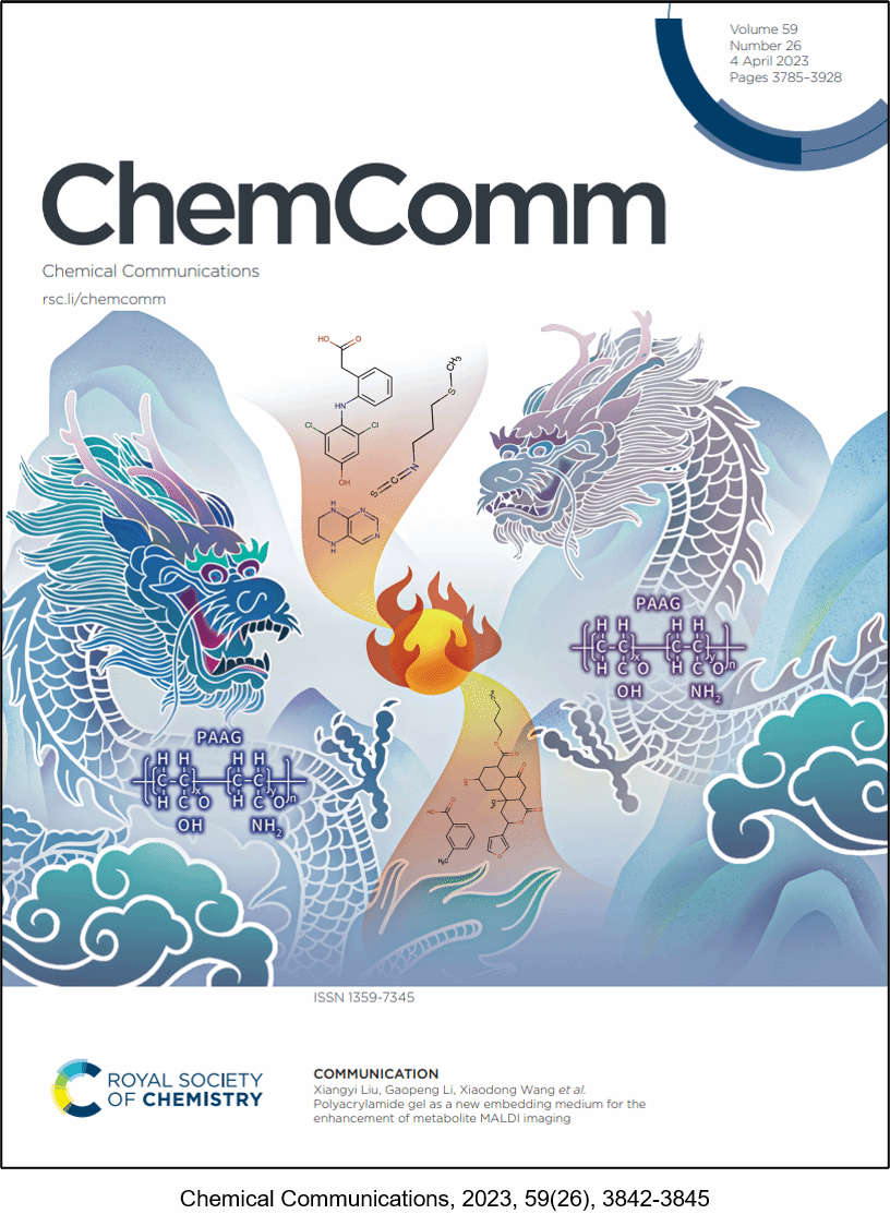 (质谱成像与代谢组学国家民委重点实验室)王晓东教授团队通过系统研究发现聚丙烯酰胺凝胶(Polyacrylamide gel,PAAG)作为一种新型包埋剂可显著提高MALDI-MSI前处理流程中生物组织样本中切片的质量,并增强小分子代谢物和脂质的原位检测及成像表征性能。这是在MALDI源质谱成像新方法开发领域取得的又一项重要进展,相关研究成果以“Polyacrylamide gel as a new embedding medium for the enhancement of metabolite MALDI imaging”为题,发表在分析化学综合权威期刊《Chemical Communications》(Nature Index收录)上,该研究论文同时被遴选为期刊封面文章(Front Cover)。这是王晓东教授团队继在分析化学顶级期刊《Analytical Chemistry》(2021, 93(35), 11920-11928, Front Cover)、《Chemical Communications》(2021, 57(82), 10707-10710, Back Cover)、《Chemical Communications》(2022, 58(5), 633-636, Front Cover)连续三次发表封面文章后,第四次入选期刊封面文章(Front Cover),中央民族大学皆为该系列论文的第一作者单位和通讯作者单位。